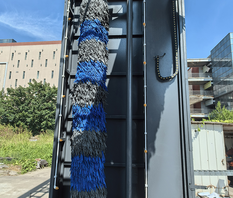 可以根據(jù)需要,選擇單程清洗或往復(fù)清洗功能,并可選擇清洗過程中是否使用頂刷清洗車頭、車尾或車頂。清洗后的水經(jīng)過處理后循環(huán)使用。具有自動(dòng)與手動(dòng)控制功能并能選擇是否使用清洗劑清洗,同時(shí)具有多項(xiàng)安全保護(hù)功能。(雙刷結(jié)構(gòu),頂部由高壓水沖洗)